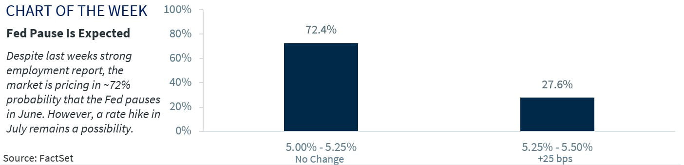 Welcome to the Basketball Finals! As we head into Game Four tonight, the Eastern and Western conference champs are battling to win this year’s Championship. Watching the game and following the stats is entertaining, but die-hard fans tune into the post-game press conferences to gain valuable insights about the game, the team’s challenges and potential adjustments that need to be made going forward. The same can be said with the Federal Reserve (Fed). Investors tune into the Fed’s post-meeting press conferences for insights on the economy, interest rates and the direction of policy. Hearing it provides more context than reading the official statement. And with the financial markets and the economy at an inflection point, the Fed’s meeting next week should shed light on where they see things heading. With market concerns oscillating between fears of an economic slowdown (i.e., no more hikes) and inflation remaining elevated (i.e., more hikes), the Fed’s updated economic projections and dot plots couldn’t come at a more critical juncture.